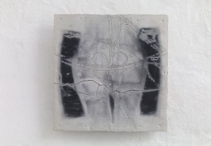 Die Werkserie „Soma & Psyche“, membranhafte Terrakotta-Wandarbeiten, ist im kontrollierten Schwarzbrand mittels formdefinierter Schablonen-Abdeckungen gefertigt (Pyrografie).